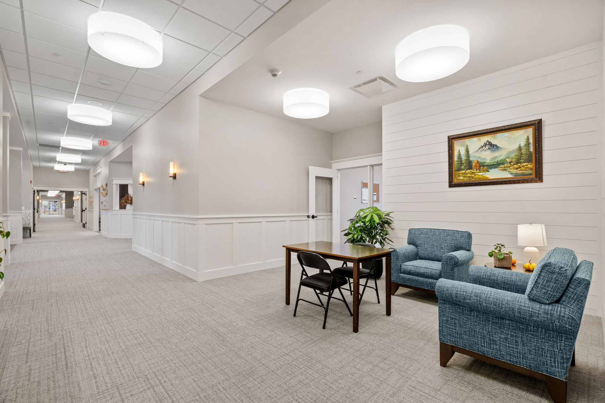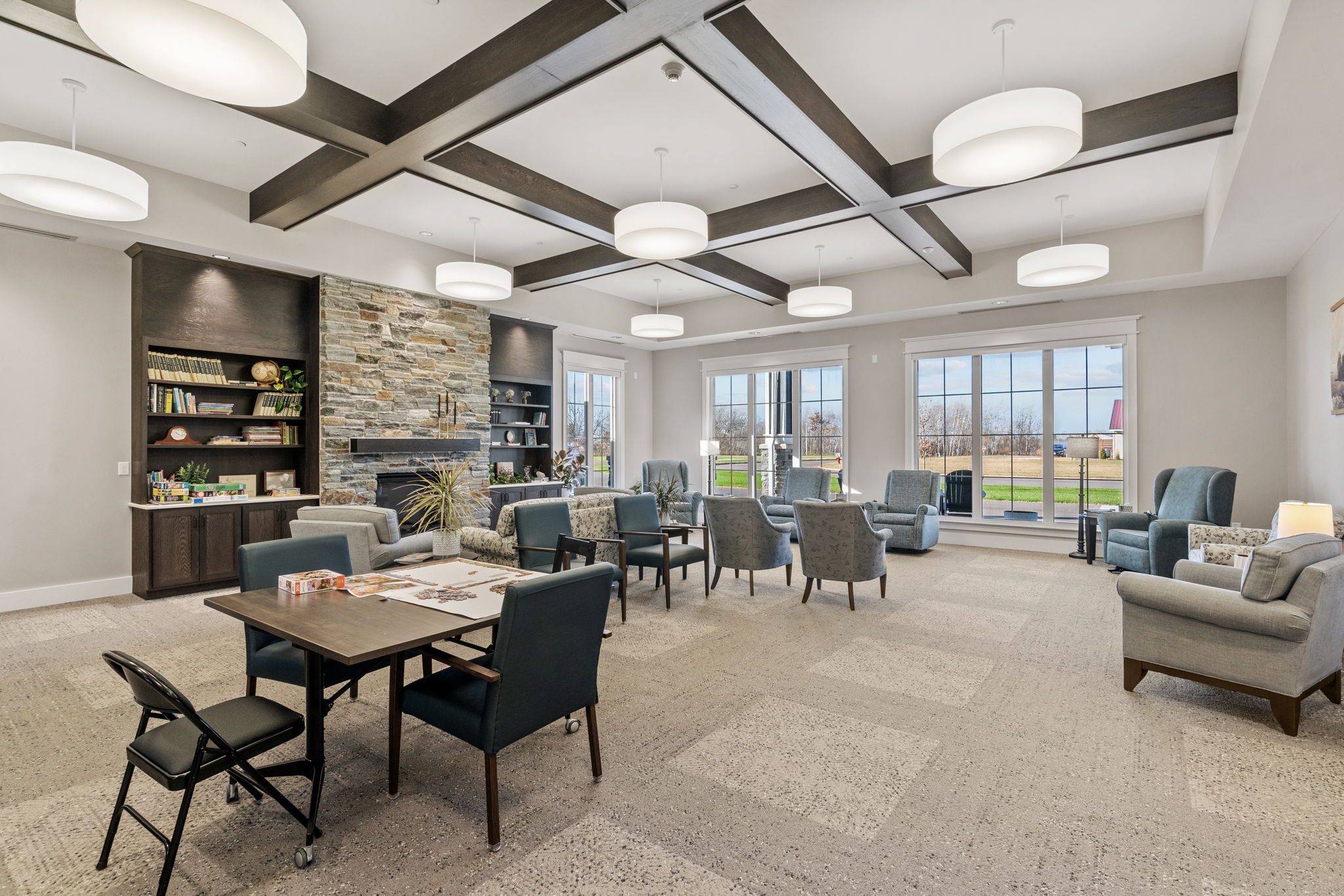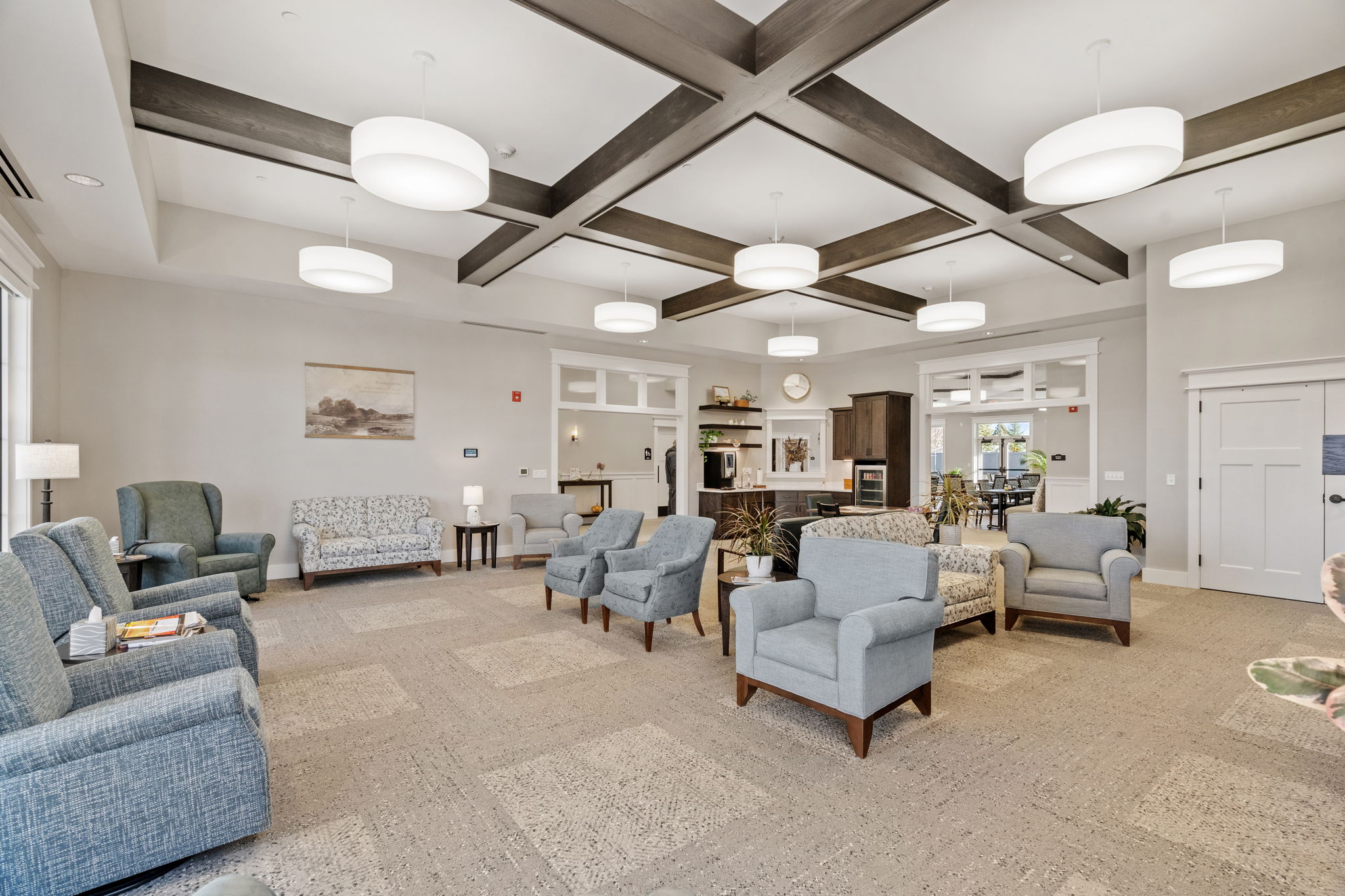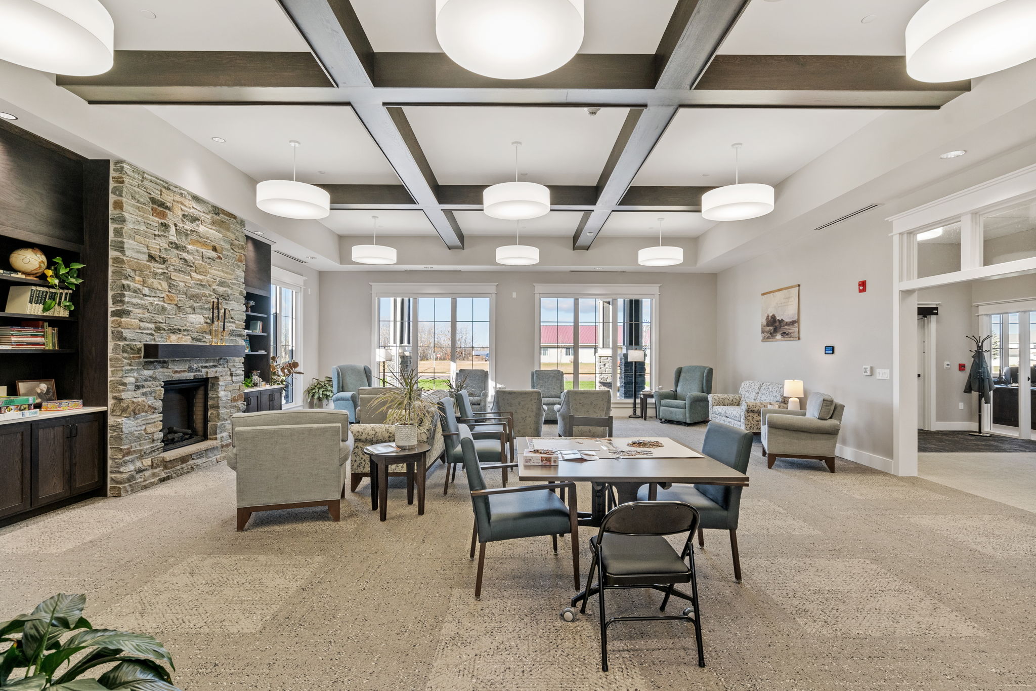 The building is thoughtfully scaled to reflect residential proportions, helping residents feel at ease while still meeting the operational needs of assisted living. The plan emphasizes straightforward circulation, clear sightlines, and accessible connections between private rooms, shared living areas, and outdoor spaces. Warm materials and natural light were used throughout to reinforce a sense of familiarity and home.