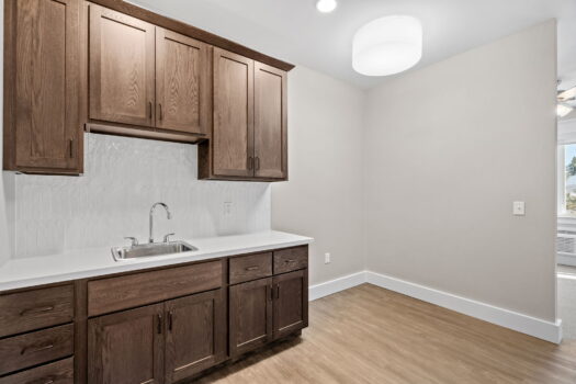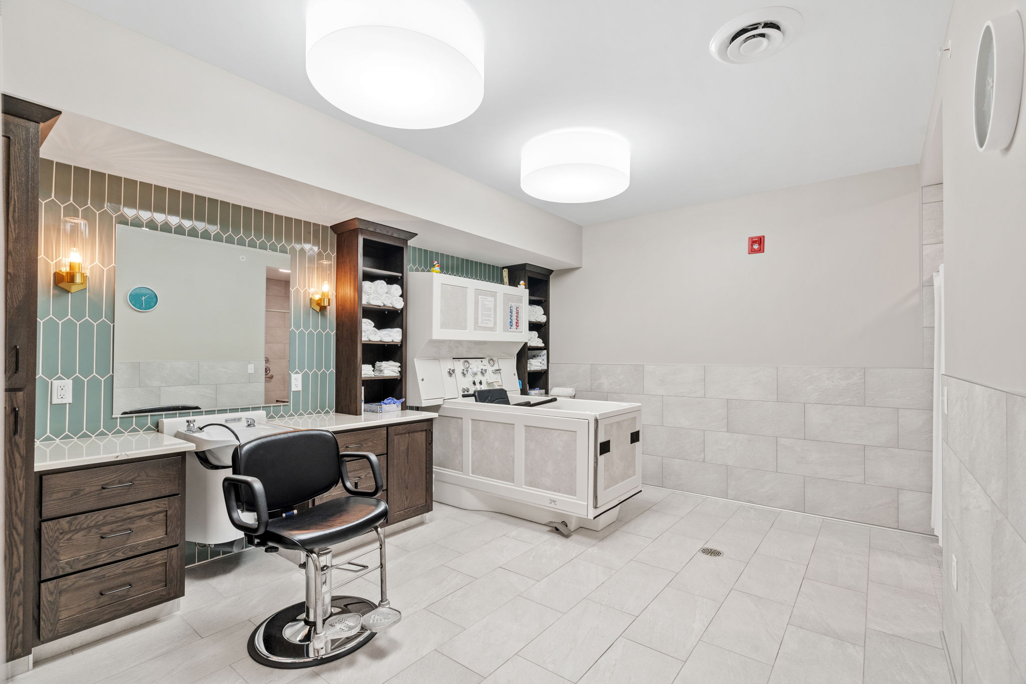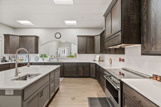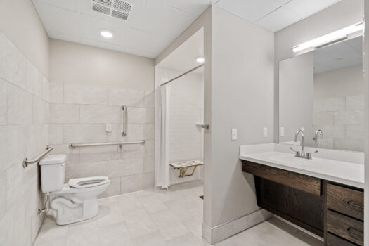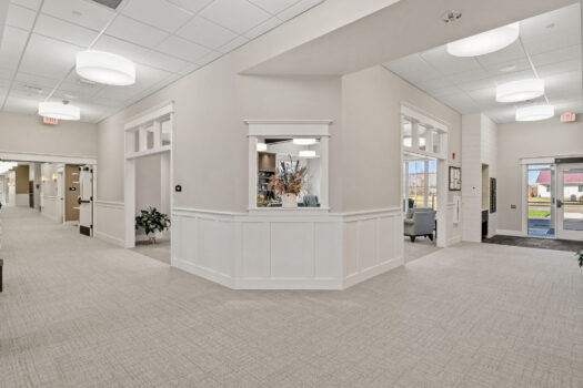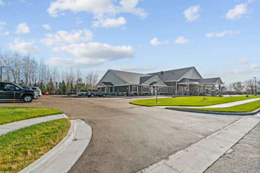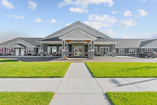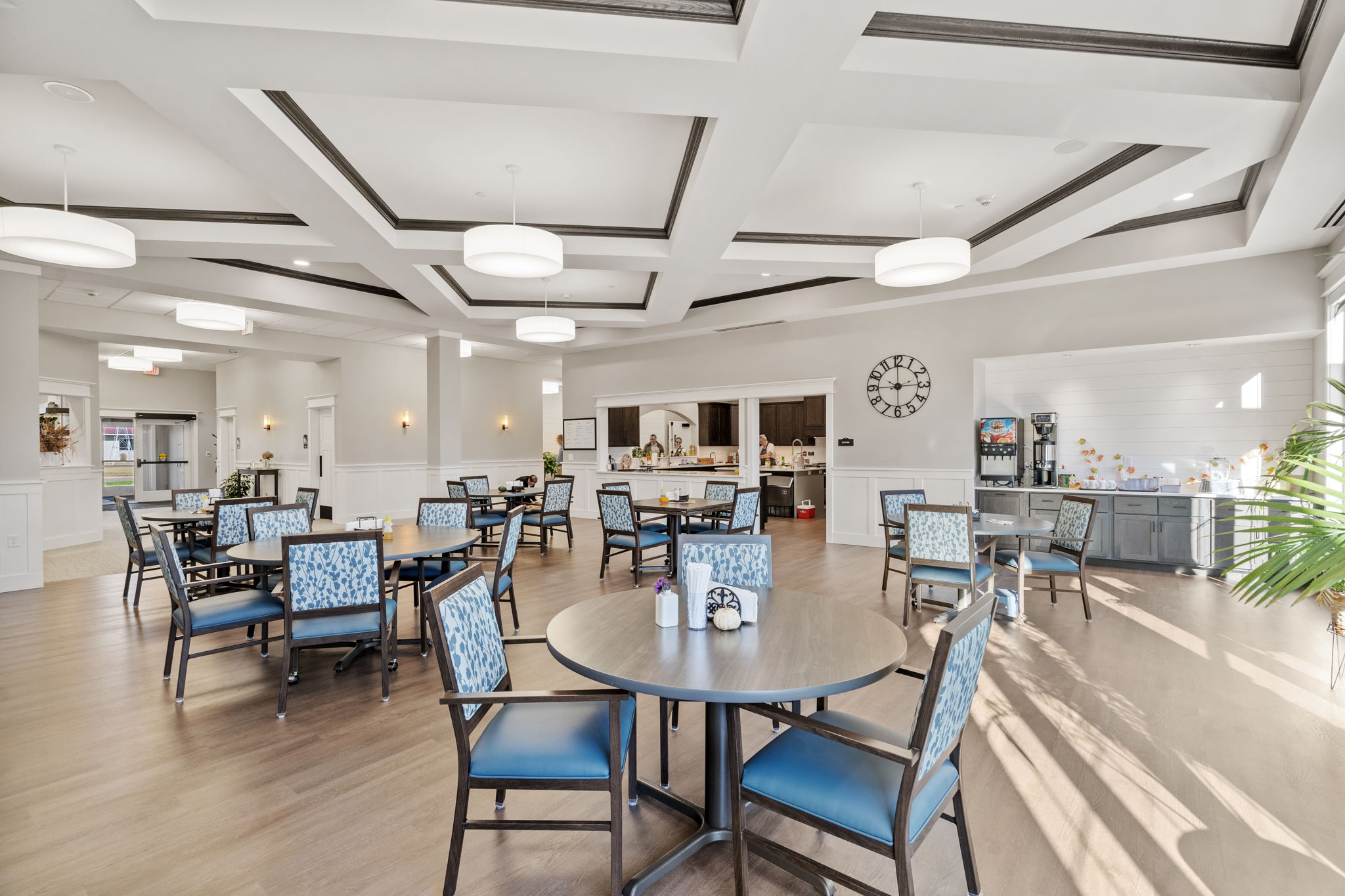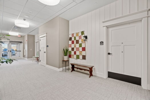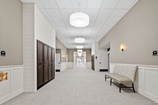 The building is thoughtfully scaled to reflect residential proportions, helping residents feel at ease while still meeting the operational needs of assisted living. The plan emphasizes straightforward circulation, clear sightlines, and accessible connections between private rooms, shared living areas, and outdoor spaces. Warm materials and natural light were used throughout to reinforce a sense of familiarity and home.
